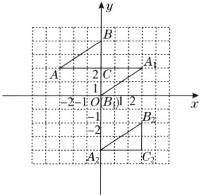 (1)将$ \triangle ABC $以点C为旋转中心旋转$ 180^{\circ} $,画出旋转后所得的图形$ \triangle A_1B_1C $。平移$ \triangle ABC $,若点A的对应点$ A_2 $的坐标为$ (0,-4) $,画出平移后所得的图形$ \triangle A_2B_2C_2 $。