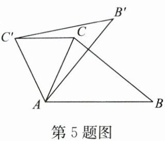 5. 如图所示,在 $\triangle ABC$ 中,$\angle CAB = 65°$,将 $\triangle ABC$ 在平面内绕点 $A$ 旋转到 $\triangle AB'C'$ 的位置,使 $CC' // AB$,则旋转角的度数为(