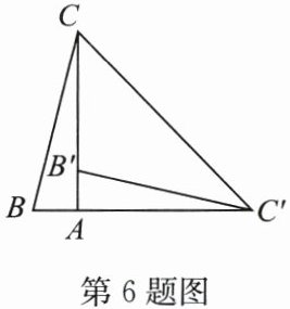 6. 如图,在 $Rt\triangle ABC$ 中,$\angle BAC = 90°$,将 $\triangle ABC$ 绕点 $A$ 顺时针旋转 $90°$ 后得到 $\triangle AB'C'$,连接 $CC'$。若 $\angle CC'B' = 32°$,则 $\angle B$ 的度数是(
