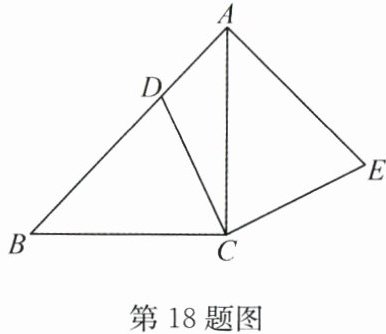 18. (11分)如图,在 $\triangle ABC$ 中,$\angle ACB = 90°$,$AC = BC$,点 $D$ 在边 $AB$ 上,连接 $CD$,将线段 $CD$ 绕点 $C$ 顺时针旋转 $90°$ 至 $CE$ 的位置,连接 $AE$。求证:$AB \perp AE$.
