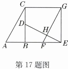 17. (11分)如图,已知 $Rt\triangle ABC$,$\angle ABC = 90°$。先把 $\triangle ABC$ 绕点 $B$ 顺时针旋转 $90°$ 至 $\triangle DBE$ 后,再把 $\triangle ABC$ 沿射线 $BE$ 平移至 $\triangle FEG$,线段 $DE$、$FG$ 相交于点 $H$.