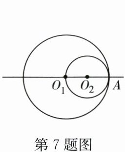 7. 如图,⊙$O_1$、⊙$O_2$内切于点 A,它们的半径分别是 8 和 4,将⊙$O_2$沿直线 $O_1O_2$平移至两圆相外切时,点 $O_2$移动的距离是(