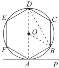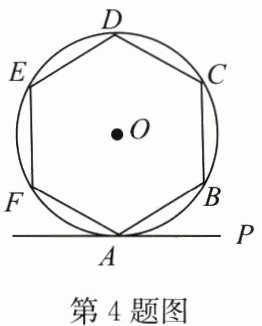 4. 如图,正六边形 ABCDEF 内接于⊙O,若直线 PA 与⊙O 相切于点 A,则$\angle PAB$的值为(