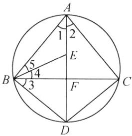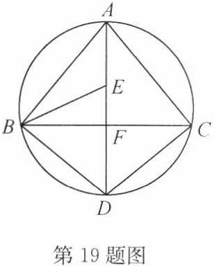 19. (13 分)如图,AD 为$\triangle ABC$外接圆的直径,$AD\perp BC$,垂足为点 F,$\angle ABC$的平分线交 AD 于点 E,连接 BD,CD。