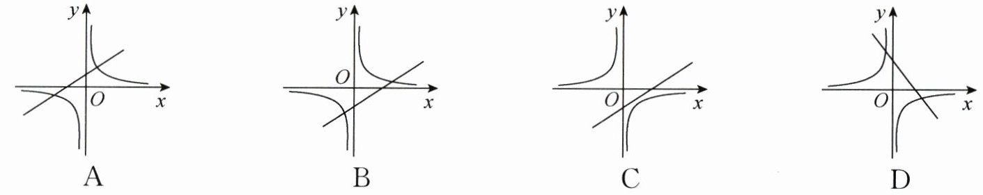 5. 已知 $ ab<0 $,则一次函数 $ y = ax - b $ 与反比例函数 $ y=\frac{a}{x} $ 在同一平面直角坐标系中的图象可能是(