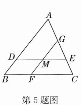 5. 如图所示,在$ \triangle ABC $中,$ DE // BC $,$ GF // AB $,则图中与$ \triangle ABC $相似的三角形有(