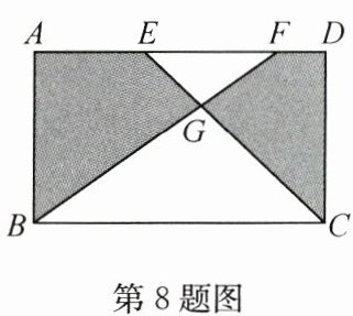 8. 如图,在矩形$ABCD$中,$AB = 6$,$BC = 10$,点$E$、$F$在$AD$边上,$BF$和$CE$交于点$G$,若$EF = \frac{1}{2}AD$,则图中阴影部分的面积为(