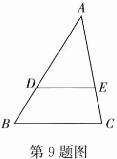 9. 如图,平行于$BC$的直线$DE$把$\triangle ABC$分成面积相等的两部分,则$\frac{AD}{AB} =$