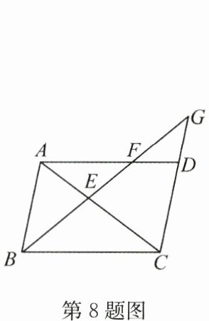 8. 如图,在平行四边形 $ ABCD $ 中,$ \angle ABC $ 的平分线交 $ AC $ 于点 $ E $,交 $ AD $ 于点 $ F $,交 $ CD $ 的延长线于点 $ G $,若 $ AF = 2FD $,则 $ \frac{BE}{EG} $ 的值为(