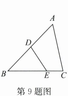 9. 如图,$ \triangle BDE \sim \triangle BCA $,若 $ \frac{BD}{BC} = \frac{2}{3} $,$ DE = 6 $,则 $ AC $ 的长度是