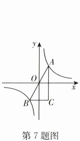 7. 如图,$ A $,$ B $ 是函数 $ y = \frac{2}{x} $ 的图象上关于原点对称的任意两点,$ BC // x $ 轴,$ AC // y $ 轴,如果 $ \triangle ABC $ 的面积记为 $ S $,那么(
