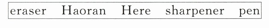 1.eraser 2.Haoran 3.pen 4.Here 5.sharpener