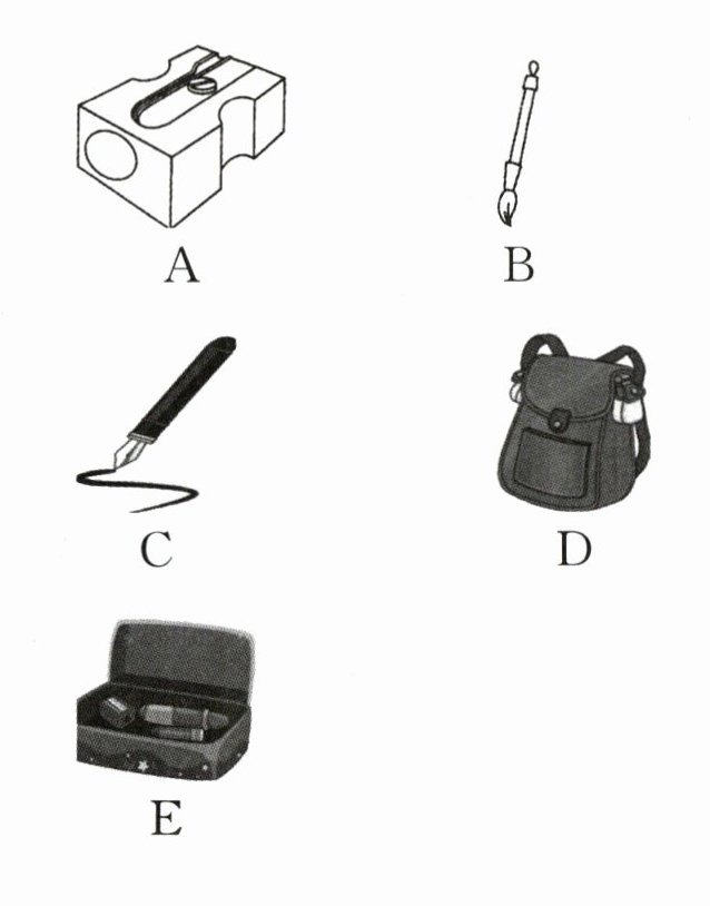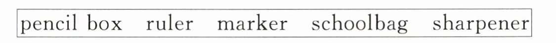 1.schoolbag 2.marker 3.pencil box 4.sharpener 5.ruler