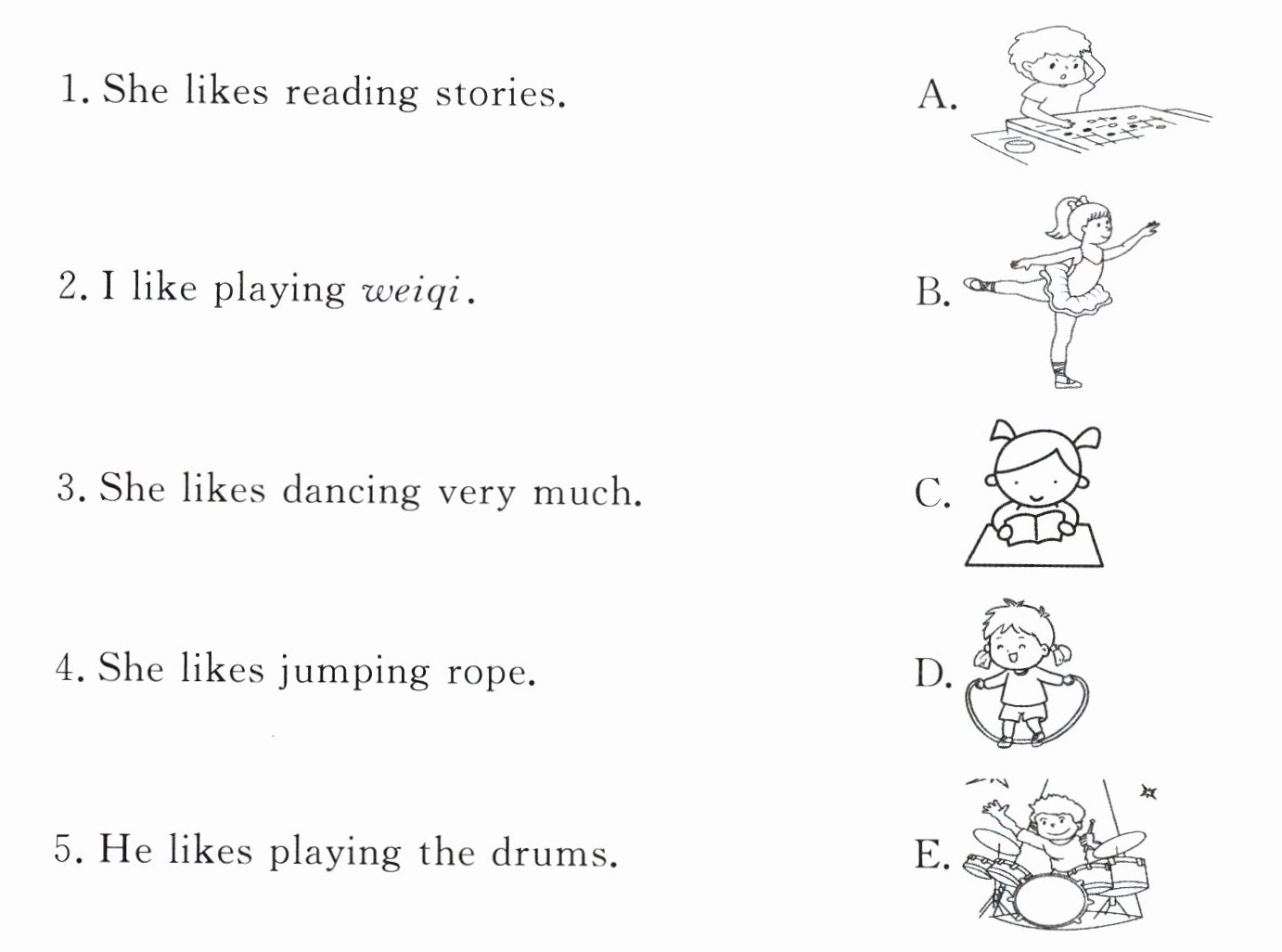 A. I like reading stories. B. I like playing ping - pong.
