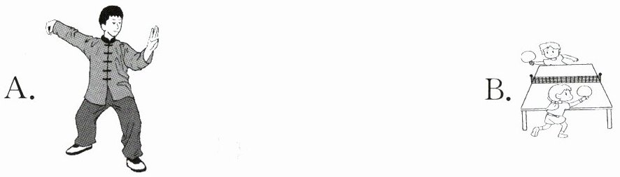 1.painting 2.practising kung fu 3.listening to music 4.playing the guitar 5.playing the drums