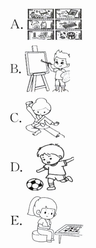 I like (practise/doing) *taiji*. This is my sister. She likes (dancing/paint). This is my brother. He likes playing (the guitar/guitar). This is my dad. He likes (fish/fishing). This is my mum. She likes (reading/paint).