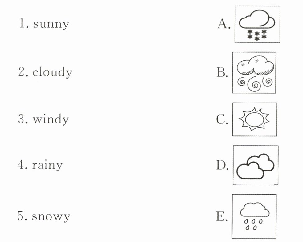 A. snowy B. windy C. sunny D. rainy E. cloudy