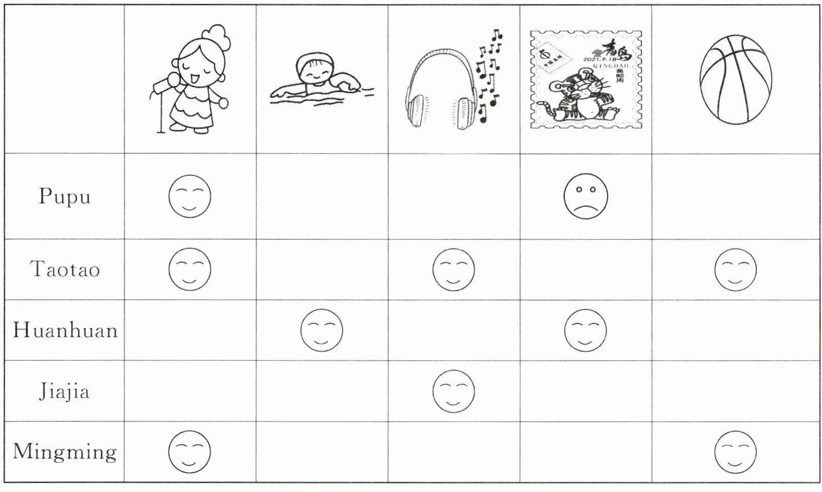 )5. Huanhuan likes collecting stamps.