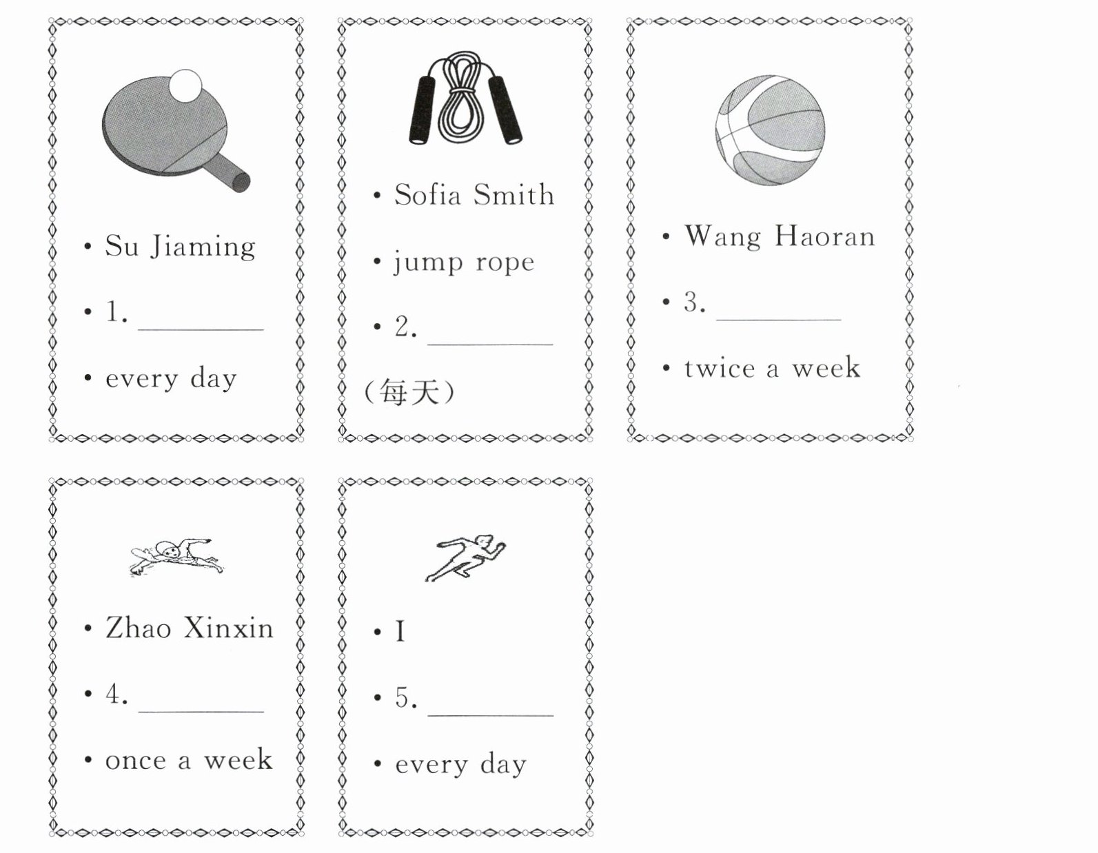 Ⅳ. 根据图片及汉语提示完善每个人的运动信息。(10 分)