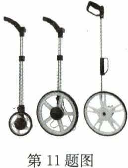 11. 如图所示,滚尺是一种测量长度的工具,多用于跑道、事故、农业等道路测量。滚尺主要由计数器和滚轮组成,当滚轮沿着路径滚动时,通过记录的圈数可以得到路径的长度。小华想利用滚尺和手机秒表,测量自己步行的平均速度。