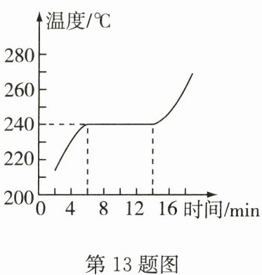 13. 某种物质在熔化过程中温度随时间变化的图像如图所示,这种物质的熔点是