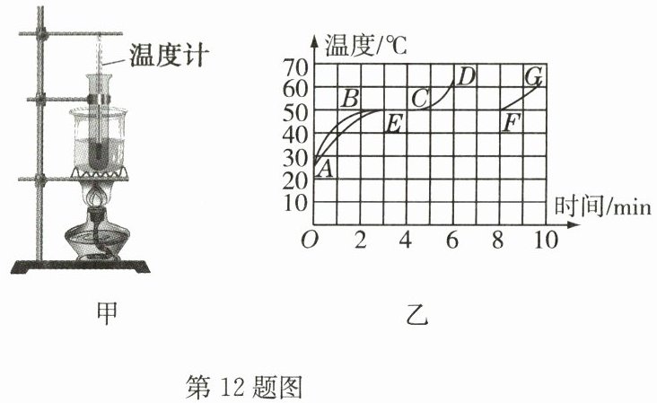 12. 利用图甲所示的装置探究海波熔化时温度的变化规律。图乙中的ABCD和AEFG分别是根据实验数据绘制的海波温度随时间变化的图像。