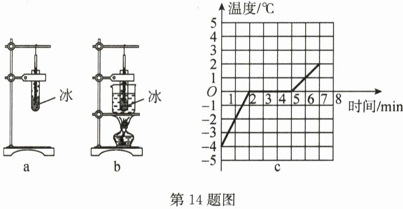 14. 甲、乙两同学分别用如图a、b所示的实验装置探究冰的熔化特点。