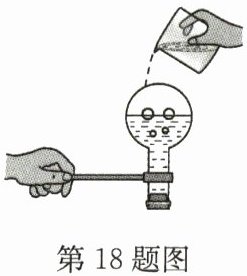 18. “做实验”是一种重要的学习方法,在学习沸腾知识时,小雨做了如下实验:水沸腾后把烧瓶从火焰上拿开,水会停止沸腾,迅速塞紧瓶塞,把烧瓶倒置并向瓶底浇冷水,如图所示。烧瓶内的水重新沸腾,此过程中烧瓶内水蒸气遇冷