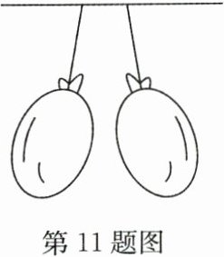 11. 小明将两只系着细线的气球在头发上摩擦后,提起细线,试图让两只气球靠近时,出现了如图所示的现象,发生这一现象的原因是两气球带上了