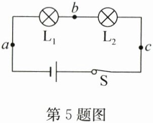 5.D解析:对调电源正负极或交换两只灯泡的位置,都能看出灯泡亮度与灯泡到电源正极的距离是否有关,故A、B不符合题意;测量电路中a、b、c三处电流的大小能直接得出电流处处相等,而非亮的灯泡电流更大的结论,故C不符合题意;测量灯泡两端的电压并不能直接判断出是不是由于某处电流更大导致L₂更亮,故D符合题意。故选D。