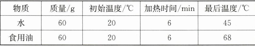 (选填“相同”或“不相同”),加热结束时,食用油的温度比水的温度高