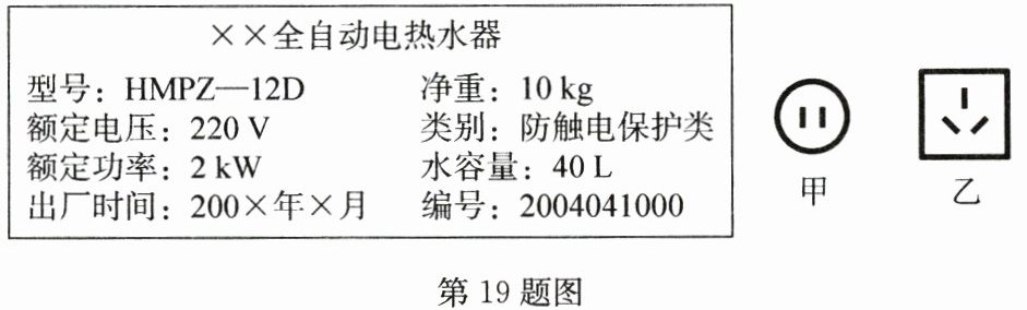 (1)该电热水器使用的插座应选用图甲和图乙中的哪一个?选择它的理由是什么?