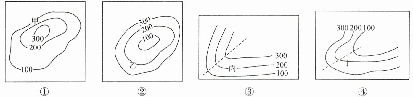 11.A解析:比例尺相同,等高距都是100米,甲地等高线密集,坡度大,所以甲、乙、丙、丁四地中,坡度最大的是甲,A正确。