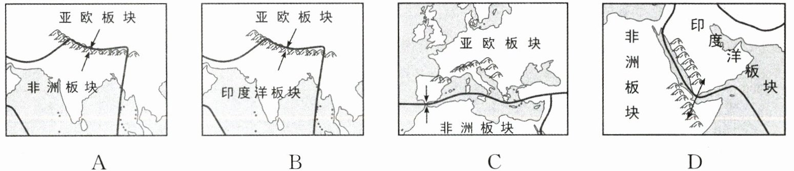 13.B 解析:喜马拉雅山位于印度洋板块与亚欧板块交界地带,地壳不稳定,多地震。