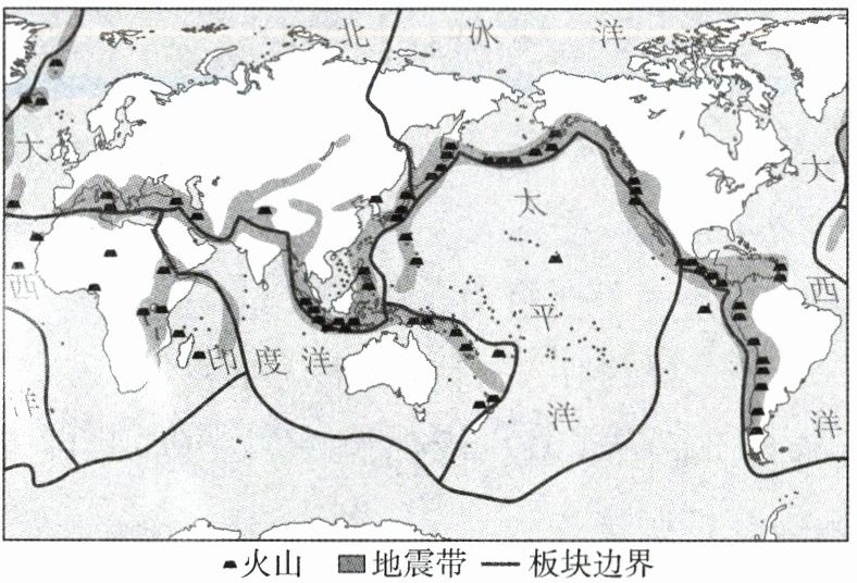 (1)环太平洋火山、地震带 地中海—喜马拉雅火山、地震带