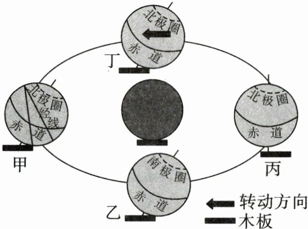 C. 按甲→丁→丙→乙的顺序沿着轨道移动乒乓球,演示地球的自转