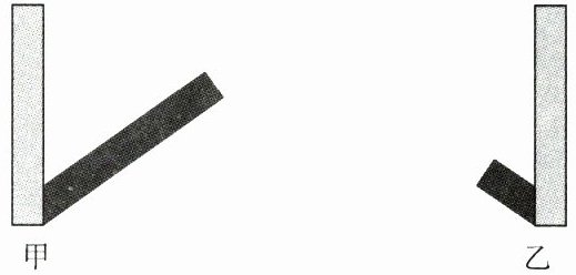 13. 玲玲观察到,杆子的影子不仅在一天中长短有变化,而且冬季和夏季正午的影长也不同。甲、乙两图如果示意的是同一天不同时间影长的情景,则更接近正午的是