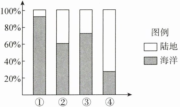 1. 读图,能够正确表示全球海陆面积比例的是(