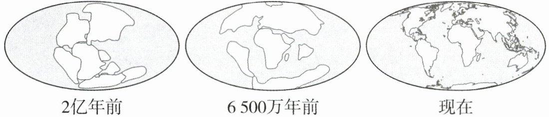 7. 下图为大陆漂移说提出的不同时期大陆分布示意图,下列叙述能为其提供证据的有(