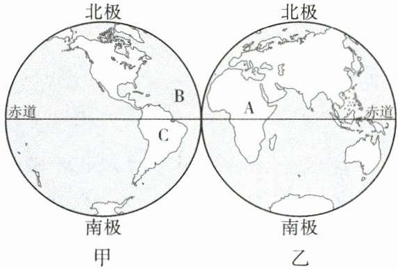 (2)赤道横穿的大陆有A