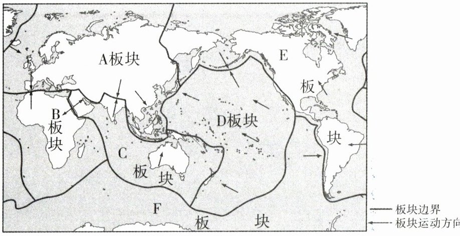 11.D 解析:图中A、B、C、D、E、F板块依次是亚欧板块、非洲板块、印度洋板块、太平洋板块、美洲板块和南极洲板块。