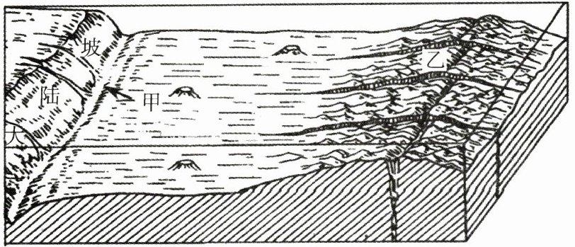 8.A 解析:从图示信息看出,甲位于大陆坡附近,且为海底地形,为海沟;乙位于海底,为洋中脊。故选A。
