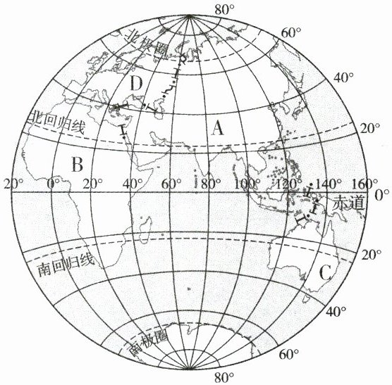 (2)$120^{\circ}E$ 经线穿过的大陆有