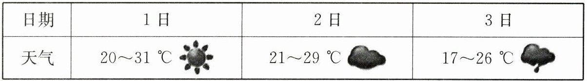 7. 下表为南充市某年某月连续三天天气预报资料表。下列关于该市这三天天气状况叙述正确的是(
