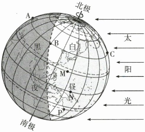 (白昼/黑夜);在从 B 运动到 C 的过程中,处于白昼