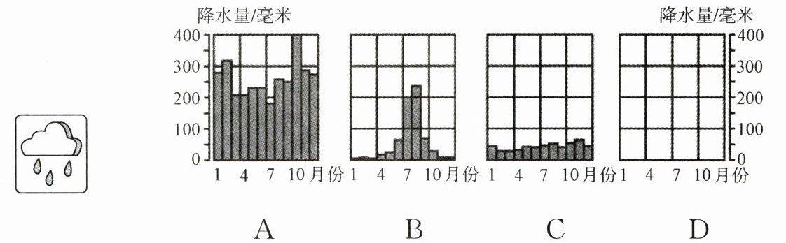 9. 如果某地常年出现如下图所示天气,则当地的降水量与下列哪一幅图相吻合(