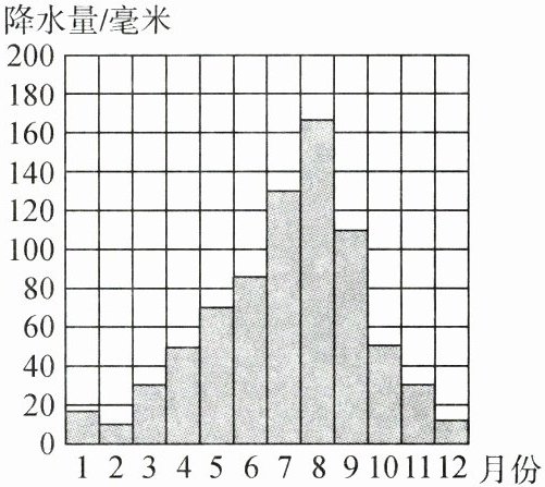 11.B 解析:由图可知,该地年降水量较多,且季节差异明显。两极地区和温带地区的内陆地区降水较少,C、D不符合;回归线两侧,大陆西岸降水少,大陆东岸降水多,A不符合,B符合。