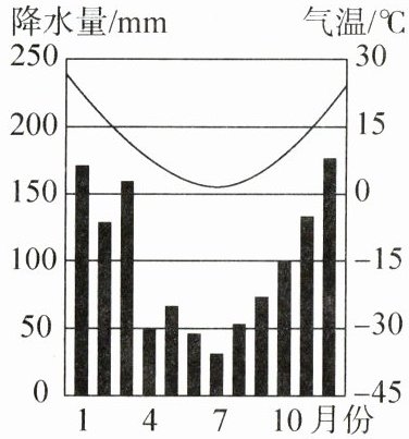 气候,两者一东一西分布于大陆两侧。此外,两种气候降水也有差异,A 为冬季