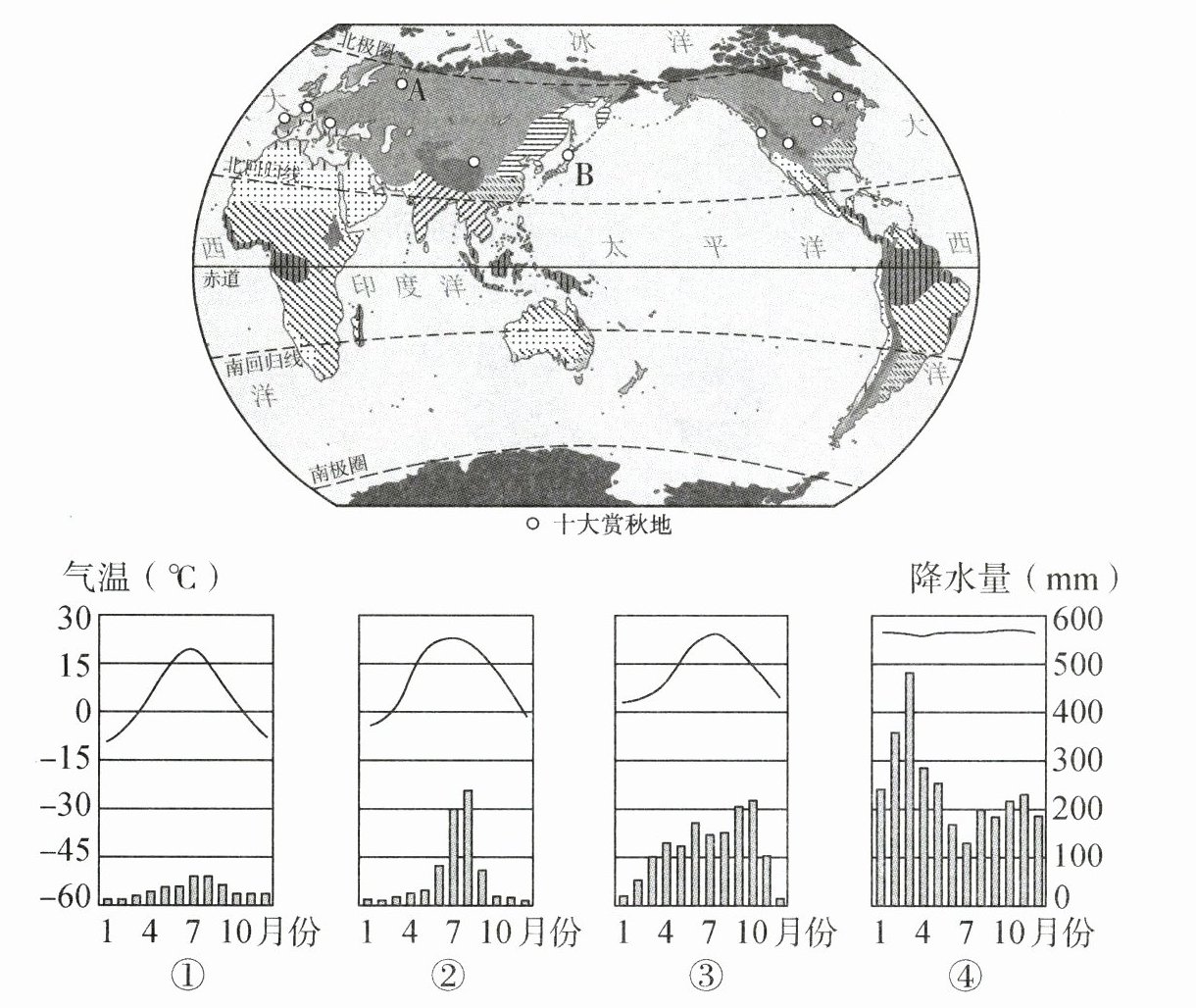 17. 《中国国家地理》杂志曾评选出全球十大赏秋地,如下图所示。读图,回答下列问题。(20 分)