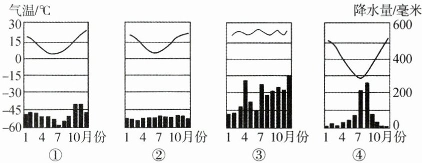 15.B 解析:由A地位于40°S以南的大陆西岸可知,该地为温带海洋性气候。②图全年温和湿润,为温带海洋性气候。故选B。